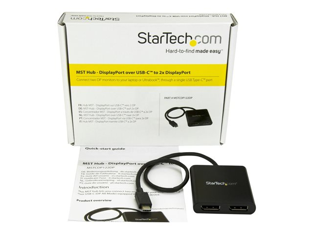 StarTech.com USB-C till DisplayPort-flerskärmsadapter - MST-hubb med 2 portar - DisplayPort-adapter - USB-C (hane) till DisplayPort (hona) - Displayport 1.2/Thunderbolt 3 - 38.6 m - USB-ström, 4K30 Hz (3840 x 2160) stöd, 2560 x 1600 (WQXGA)-stöd 60 Hz - svart - för P/N: BNDTB10GI, BNDTB210GSFP, BNDTB310GNDP, BNDTB410GSFP, BNDTB4M2E1, BNDTBUSB3142 MSTCDP122DP