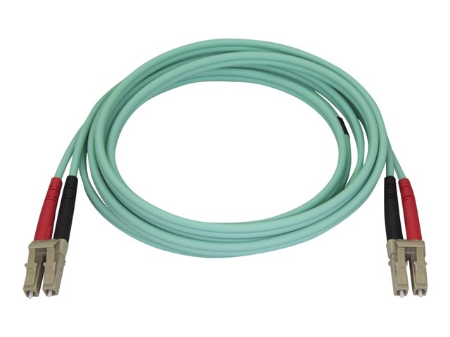 StarTech.com Aqua OM4 Duplex Multimode Fiber - 2m / 6 ft - 100 Gb - 50/125 - OM4 Fiber - LC to LC Fiber Patch Cable (450FBLCLC2) - Nätverkskabel - LC multiläge (hane) till LC multiläge (hane) - 2 m - 2 m - fiberoptisk - duplex - 50/125 mikron - OM4 - havsblå