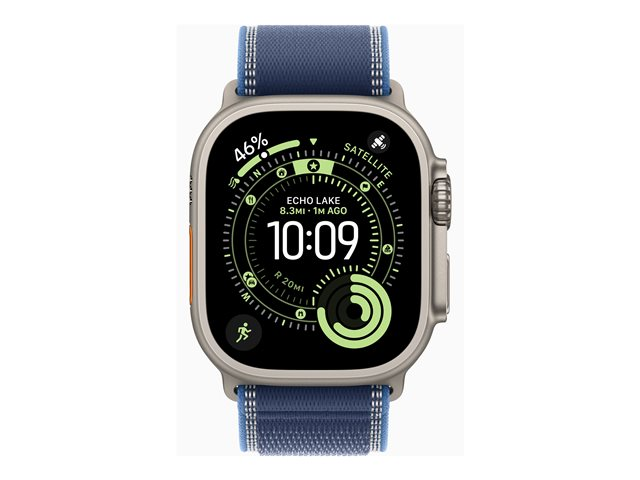 Apple Watch Ultra 3 - 49 mm - naturlig titan - Ja smart klocka med Trail Loop - nylonväv - blå/klarr blå - bandstorlek: S/M - 64 GB - LTE, Wi-Fi 4, UWB, Bluetooth, NFC - 5G - 61.6 g