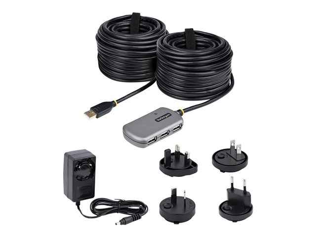 StarTech.com USB Extender Hub, 24m USB 2.0 Extension Cable with 4-Port USB Hub, Active/Bus Powered USB Repeater Cable, Optional 10W Power Supply Included - USB-A Hub w/ ESD Protection (U02442-USB-EXTENDER) - Hubb - 4 x USB 2.0