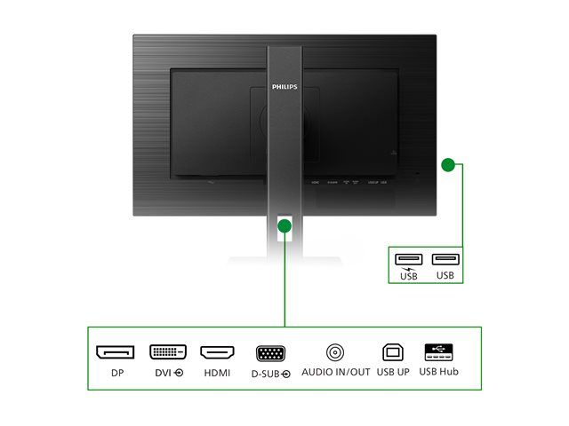 Den miljövänliga Philips-skärmen på 24 tum är utformad för hållbar produktivitet. Mycket energieffektiv design ger en ny nivå av strömbesparing. PowerSensor och LightSensor minskar energiförbrukningen ytterligare samtidigt som du får en kristallklar bild.