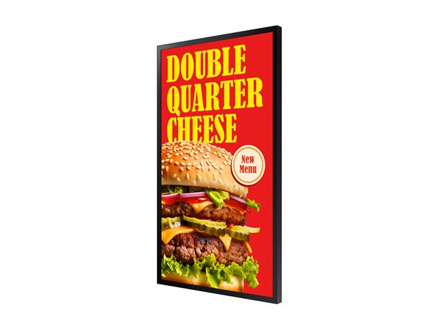 Samsung OH46DX är en mångsidig kommersiell skärm som är skräddarsydd för digitala skyltningstillämpningar. Med SMART Signage Platform och MagicInfo S10 Player möjliggör den här skärmen sömlös innehållshantering. Med en ljusstyrka på 4000 cd/m² och ett kontrastförhållande på 6000:1 förblir bilderna klara och levande, även i full sol. Skärmen är konstruerad för 24-timmars drift och klarar ett brett temperaturintervall från -30°C till 50°C, vilket gör den lämplig för olika miljöer. Den 46-tums LED-bakgrundsbelysta LCD-plattskärmen stöder flera visningslägen, inklusive porträtt och landskap, vilket ger flexibilitet för olika reklambehov. Dessutom säkerställer skyddsfunktioner som väderbeständig och slagtålig design tillförlitlighet i utomhusmiljöer, medan det avancerade kylsystemet hjälper till att bibehålla optimal prestanda.