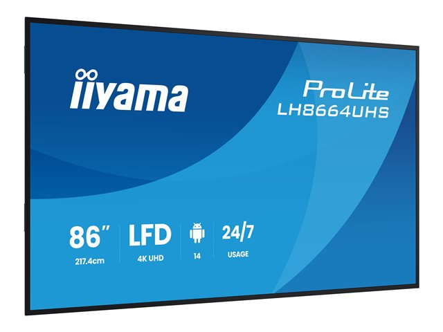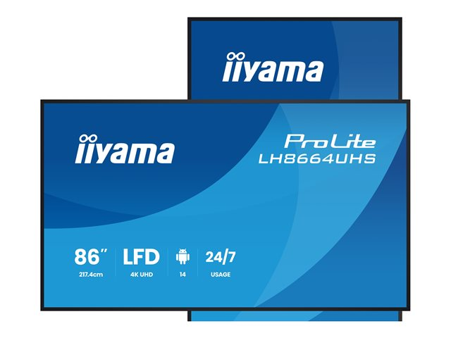 iiyama ProLite LH8664UHS-B3AG - 86" Diagonal klass (85.6" visbar) LED-bakgrundsbelyst LCD-skärm - digital skyltning - med inbyggd SoC-mediespelare - Android - 4K UHD (2160p) 3840 x 2160 - svart (ram), matt finish LH8664UHS-B3AG