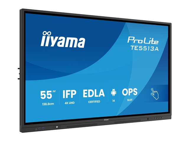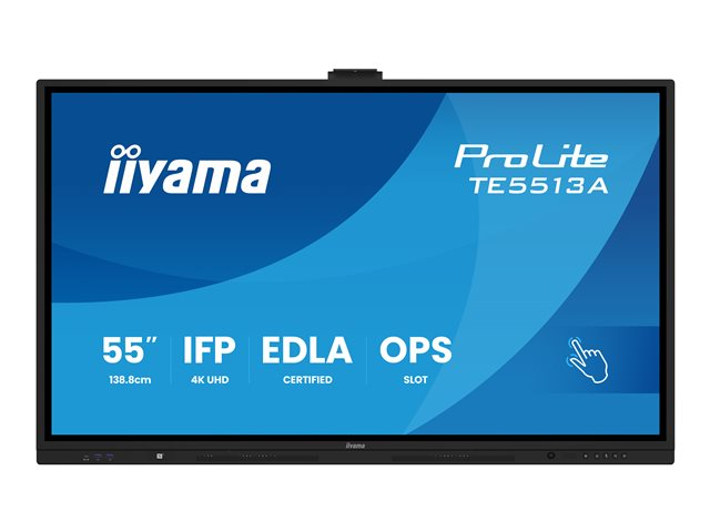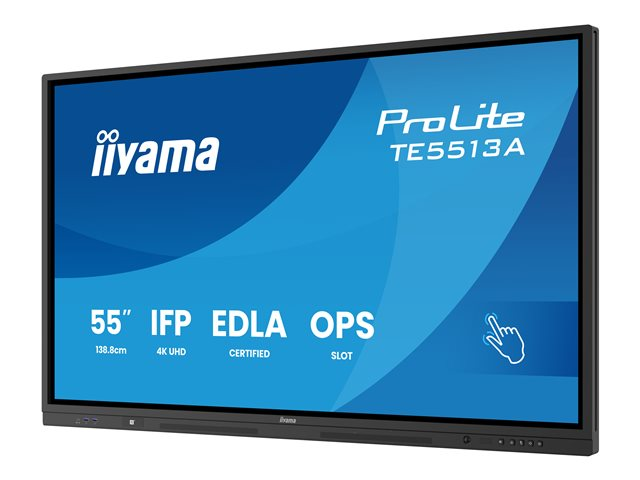 iiyama ProLite TE5513A-B2AG - 55" Diagonal klass (54.6" visbar) LED-bakgrundsbelyst LCD-skärm - interaktiv digital skyltning - med pekskärm (multi-touch) / PC-anslutning som tillval - 4K UHD (2160p) 3840 x 2160 - svart ram med matta ytor TE5513A-B2AG