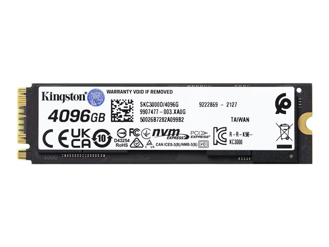 Kingston KC3000 - SSD - 4096 GB - inbyggd - M.2 2280 - PCIe 4.0 (NVMe) - för Intel Next Unit of Computing 12 Pro Kit - NUC12WSKi5 SKC3000D/4096G