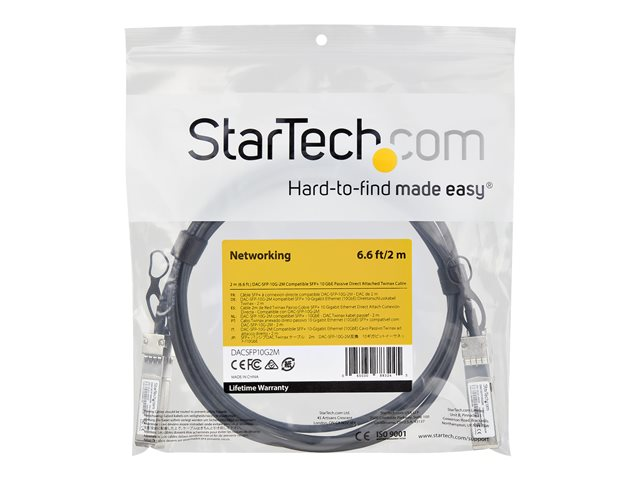StarTech.com Dell EMC DAC-SFP-10G-2M-kompatibel SFP+ twinaxkabel för direktanslutning - 2 m - 10GBase direktkopplingskabel - SFP+ (P) spärrad till SFP+ (P) spärrad - 2 m - dubbelaxlad - passiv