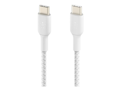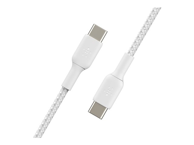 Belkin BoostCharge - USB-kabel - USB-C (hane) till USB-C (hane) - USB 2.0 - 3 A - 1 m - USB Power Delivery (60W) - vit (paket om 2) CAB004BT1MWH2PK