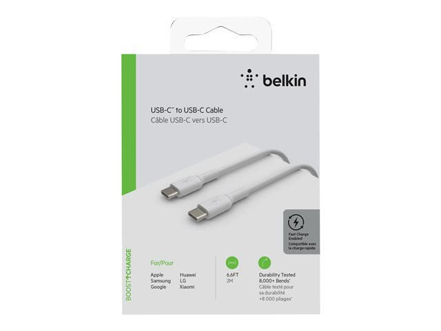 Belkin BoostCharge - USB-kabel - USB-C (hane) till USB-C (hane) - 2 m - vit