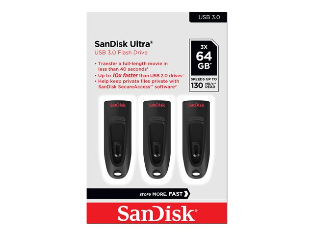 SanDisk Ultra - USB flash-enhet - 64 GB - USB 3.0 (paket om 3) SDCZ48-064G-G46T
