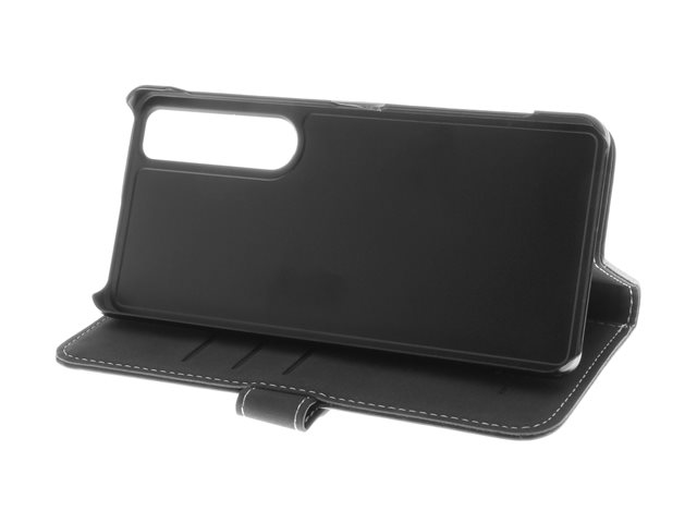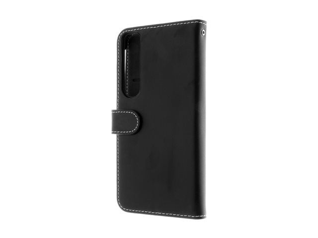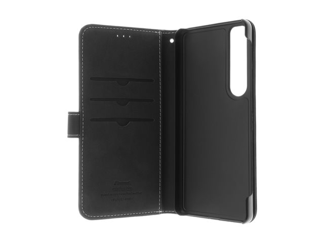 Insmat Exclusive Flip Case - Vikbart fodral för mobiltelefon - genuint läder, kartong+papper, polykarbonat, bomullssömmar - svart - för Sony XPERIA 1 VI