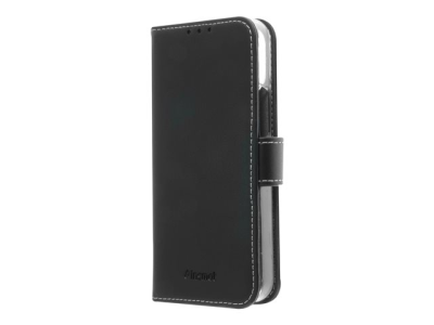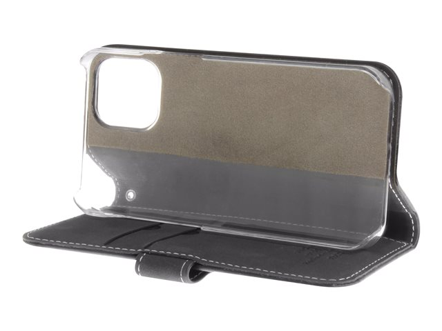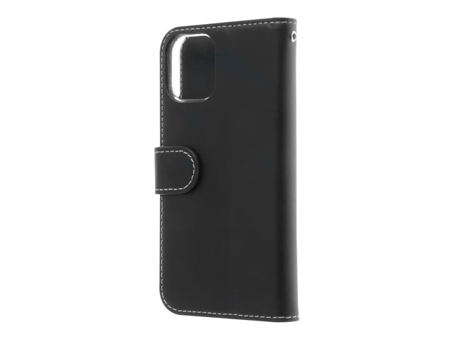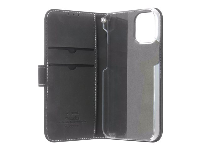 Insmat Exclusive Flip Case - Vikbart fodral för mobiltelefon - genuint läder, papper, kartong, polykarbonat, aluminiumfolie - svart - för Apple iPhone 12 mini 650-2878
