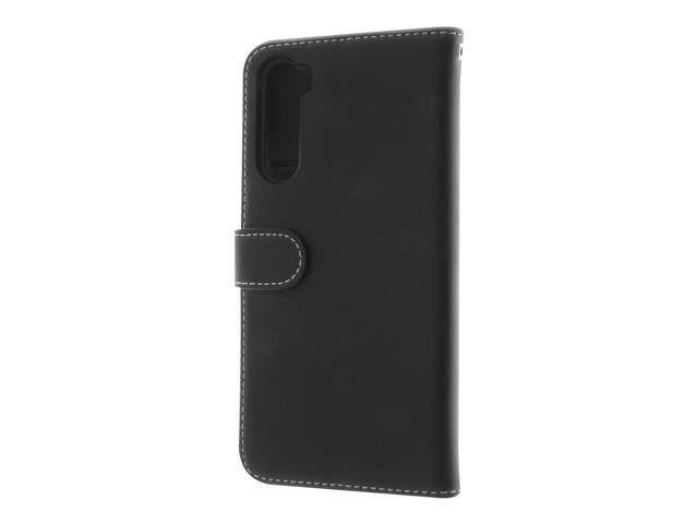 Insmat Exclusive Flip Case - Vikbart fodral för mobiltelefon - genuint läder, papper, kartong, polykarbonat, aluminiumfolie - svart - för OnePlus Nord