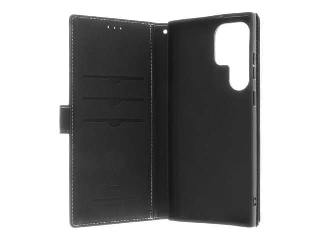 Insmat Exclusive - Vikbart fodral för mobiltelefon - genuint läder, papper, polyuretan, kartong, bomull, aluminiumfolie, brons, termoplastisk polyuretan (TPU) - svart - för Samsung Galaxy S23 Ultra