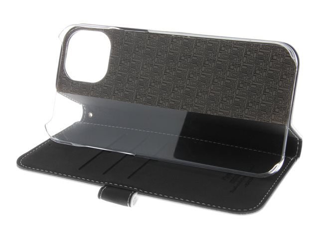 Insmat Exclusive - Vikbart fodral för mobiltelefon - genuint läder, polykarbonat, kartong+papper+aluminiumfolie - vit - för Apple iPhone 15