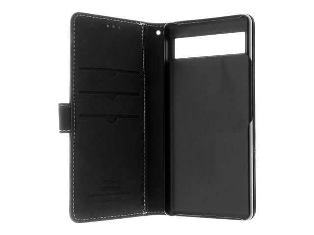 Insmat Exclusive - Vikbart fodral för mobiltelefon - genuint läder, polykarbonat, kartong+papper+aluminiumfolie - svart - för Google Pixel 7a