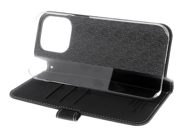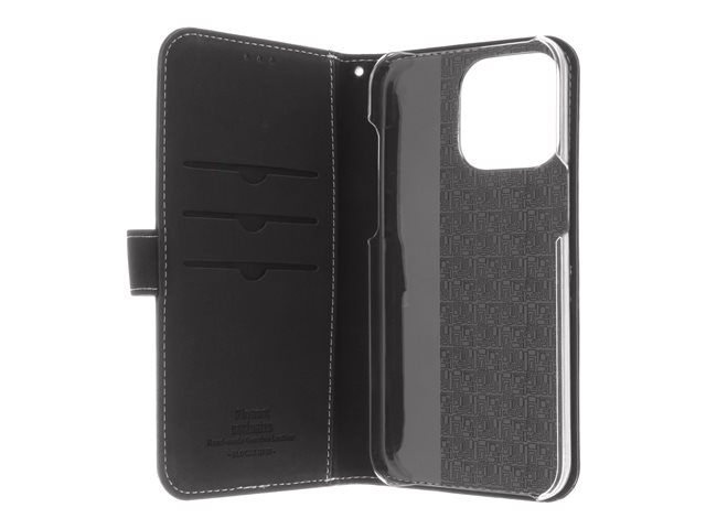 Insmat Exclusive - Vikbart fodral för mobiltelefon - läder, kartong+papper+aluminiumfolie, polykarbonat (PC) - svart - för Apple iPhone 15 Pro Max