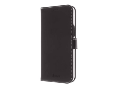 Insmat Exclusive - Vikbart fodral för mobiltelefon - genuint läder, termoplastisk polyuretan (TPU), kartong+papper+aluminiumfolie, bomullssömmar - svart - för Apple iPhone 13 Pro Max