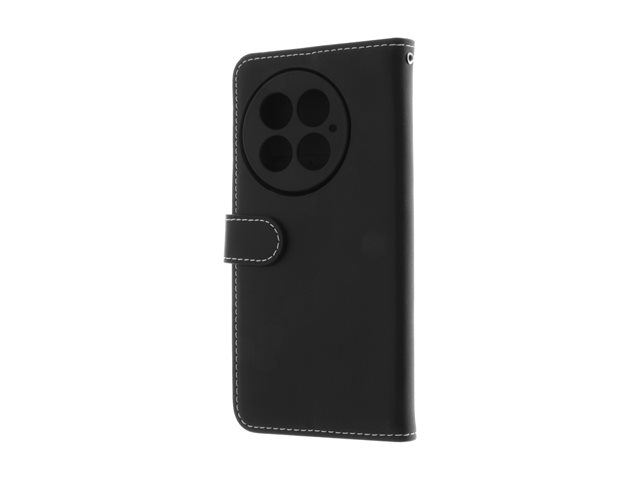 Insmat - Vikbart fodral för mobiltelefon - genuint läder, kartong+papper+aluminiumfolie, termoplastisk polyuretan (TPU), bomullssömmar - svart - för OnePlus 13 650-3311