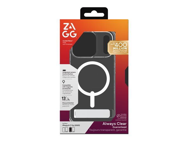 Your new iPhone is ultra-modern, clean, and show-worthy. It's more than a device-it says a lot about you. So protect it without eclipsing its beauty. Crystal Palace Snap with Kickstand elegantly stands up to the task, balancing clarity with exceptional strength. This case covers every detail so you can focus on enjoying the phone you love. It starts with an incredible 13 feet of drop protection engineered into the case's structure, incorporating ultra-resilient graphene that reinforces without adding bulk. And we've added a kickstand and camera control button for ultimate usability. Crystal Palace Snap with Kickstand has anti-yellowing technology and anti-scratch finish to keep your case (and phone) looking pristine, and of course, it's built MagSafe compatible and works flawlessly with wireless chargers. It's the perfect sidekick-fitting in seamlessly while handling the heavy lifting.