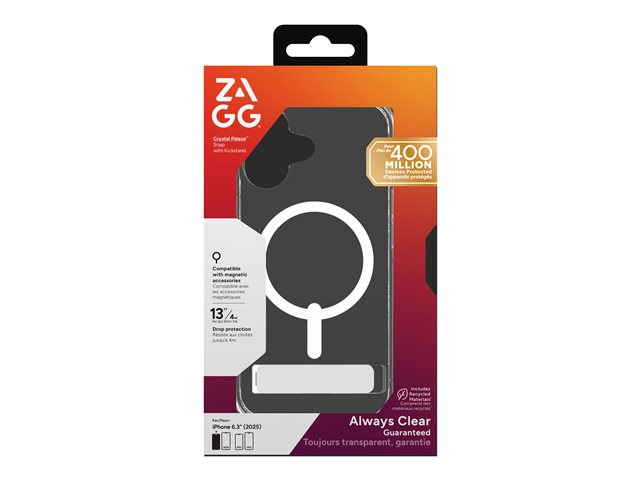 Zagg Crystal Palace Snap - Baksidesskydd för mobiltelefon - fällbart ställ - MagSafe-kompatibilitet - CrystalClear - för Apple iPhone 17