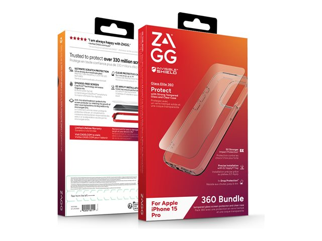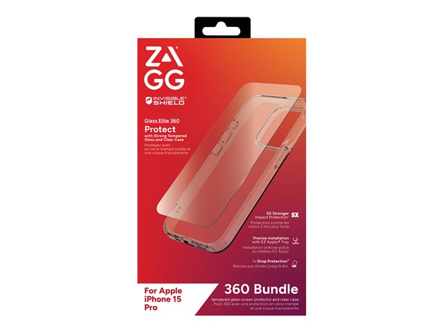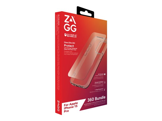 Zagg InvisibleShield Glass Elite 360 - Skyddsfodral för mobiltelefon - glas, polykarbonat - klar - för Apple iPhone 15 Pro