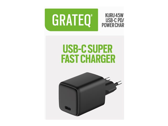 GRATEQ Kuru - Strömadapter - GaN - 45 Watt - 4.05 A - PD/PPS, SFC 2.0 (USB-C) - svart