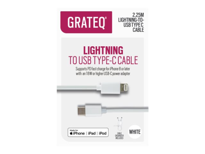Kabeln stöder PD Power Delivery-laddning för iPhone 8 och nyare modeller när den används med en USB-c-strömadapter på 18 W eller högre som stöder Power Delivery (PD). Du kan ladda din iPhone upp till 50% på 30 minuter.
