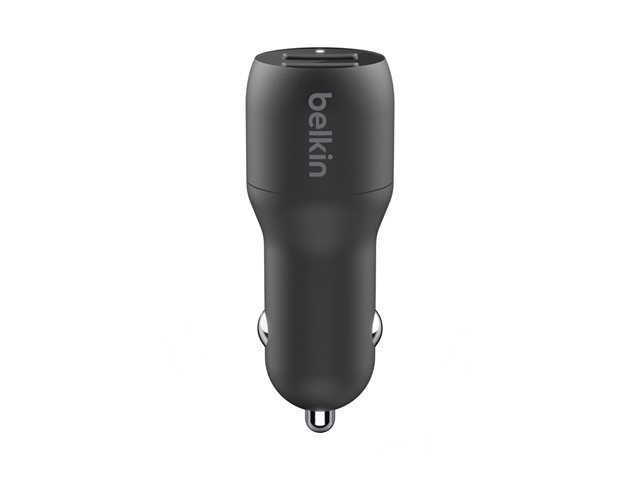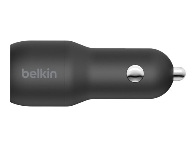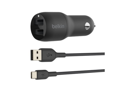 Belkin BoostCharge Dual Charger - Strömadapter för bil - 24 Watt - 4.8 A - 2 utdatakontakter (USB) - på kabel: USB-C - svart CCE001BT1MBK