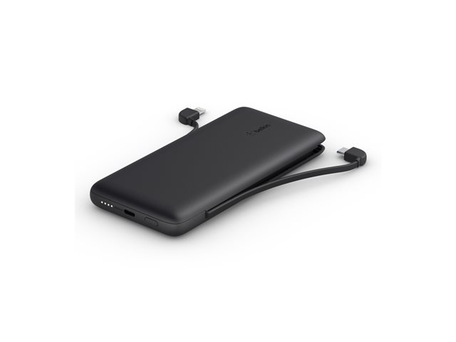 This 10K power bank with integrated USB-C and Lightning cables allows you to charge an iPhone 14/13/12 series without carrying an additional cord or charge any two devices at once. Enjoy pass through that keeps the power bank itself charged, while your phone powers up.