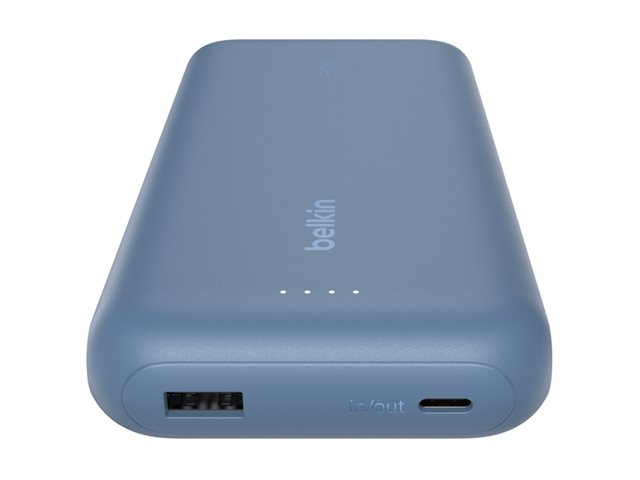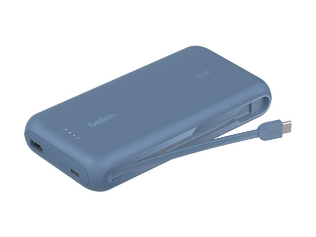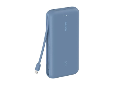 Belkin BoostCharge - Power bank - med integrerad kabel - 20000 mAh - 30 Watt - PD - 3 utdatakontakter (2 x USB-C, USB) - blå BPB024HQBL