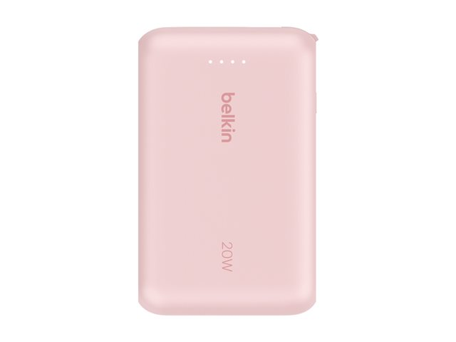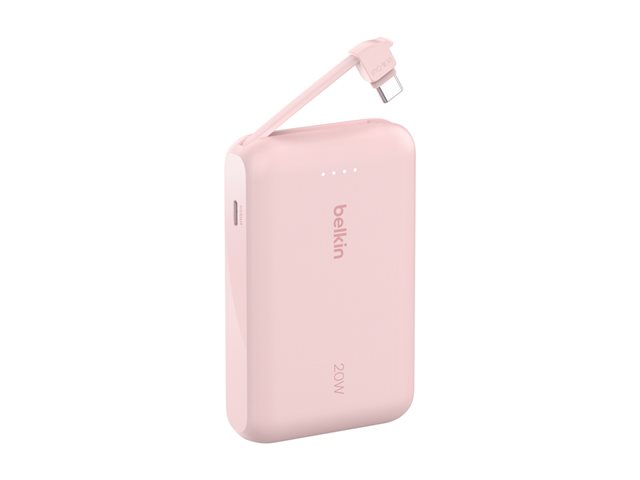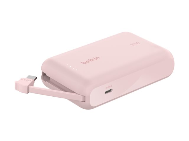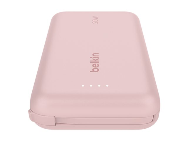 Belkin BoostCharge - Power bank - med integrerad kabel - 10000 mAh - 20 Watt - 3 A - Fast Charge - 2 utdatakontakter (USB-C) - rosa BPB021HQPK