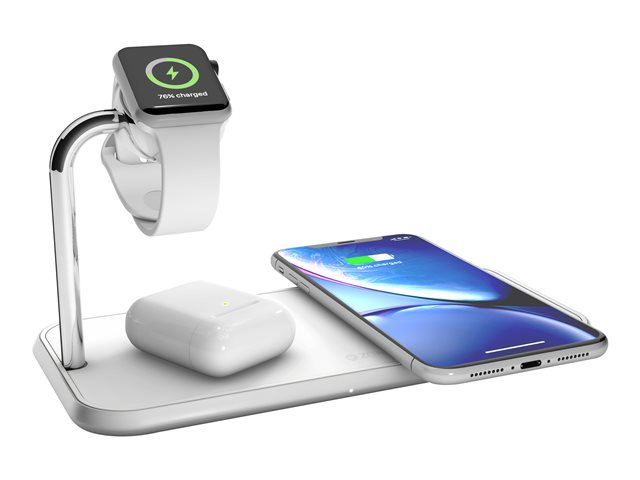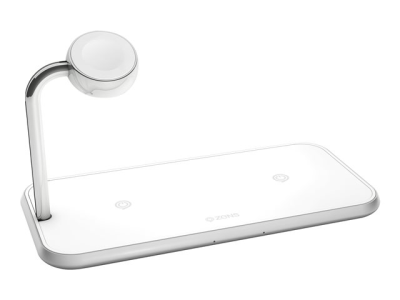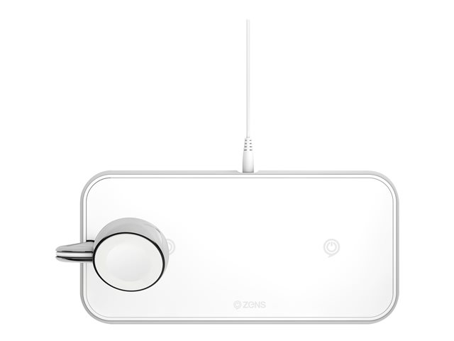 ZENS Dual+Watch Aluminium Wireless Charger - Trådlös laddningsmatta + växelströmsadapter - 20 Watt - Apple Fast Charge, FC - vit - för Apple Watch