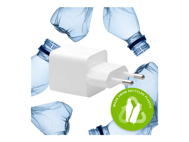 | Egenskaper | Överhettningsskydd, kompakt design, snabbladdning, laddar samtidigt upp till 2 enheter, GaN Technology, 100 % återvinningsbar |