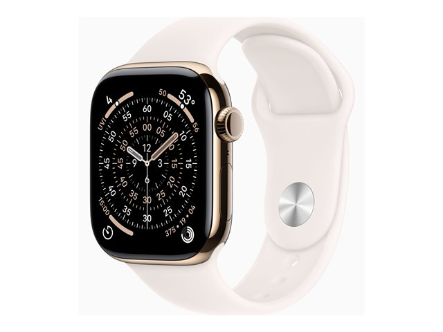 Apple Watch Series 11 (GPS + Cellular) - 42 mm - guld titan - smart klocka med sportband - fluoroelastomer - lätt rouge - bandstorlek: S/M - 64 GB - Bluetooth, LTE, Wi-Fi 4, UWB - 5G - 34.6 g MF8W4QN/A