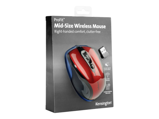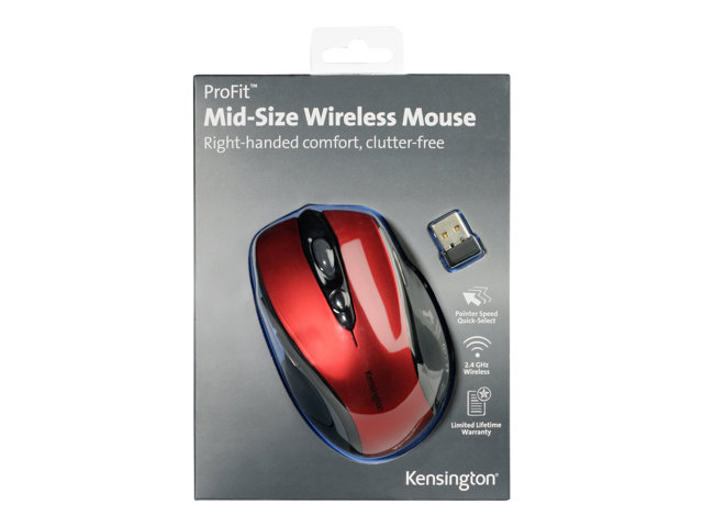 Kensington Pro Fit Mid-Size - Mus - högerhänt - optisk - trådlös - 2.4 GHz - trådlös USB-mottagare - Rubinröd K72422WW