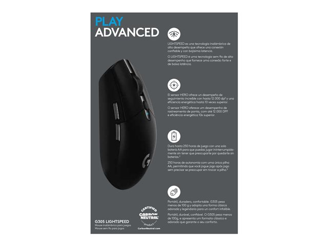 Logitech G G305 - Mus - optisk - 6 knappar - trådlös - 2.4 GHz - trådlös USB-mottagare - svart
