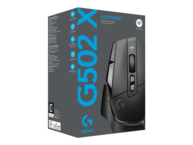 Logitech G G502 X LIGHTSPEED - Mus - optisk - 8 knappar - trådlös - 2.4 GHz - USB Logitech LIGHTSPEED-mottagare - svart