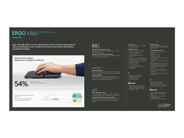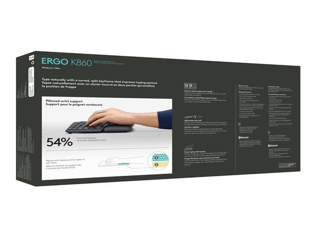 Logitech ERGO K860 - Tangentbord - trådlös - 2.4 GHz, Bluetooth 5.0 - hela norden 920-009168