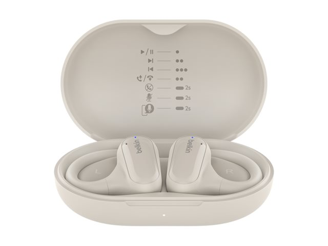 Belkin SoundForm ClearFit - True wireless-hörlurar med mikrofon - öppet öra - montering över örat - Bluetooth - sand AUC013CTSA