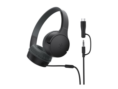 Belkin SoundForm Mini - Hörlurar med mikrofon - på örat - kabelansluten - 3,5 mm kontakt, USB-C - svart