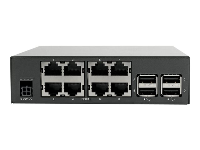 Eaton Tripp Lite Series 8-Port Console Server erbjuder anslutnings- och fjärrhanteringsfunktioner för nätverksprestanda. Den har stöd för olika driftsmiljöer, inklusive Mac och Unix, och fungerar effektivt i ett brett temperaturområde från -25°C till 60°C. Servern har 8 portar för Gigabit Ethernet-anslutningar, vilket ger möjlighet till enhetshantering samtidigt som det säkerställer överensstämmelse med standarder som UL, FCC och RoHS.