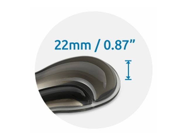 När det smala duo gel-handledsstödet för mus/trackballs används med möss och trackballs med låg profil blir det ett ergonomiskt komplement som har utformats för att optimera komfort. Den gelfyllda kudden följer handledens och handens naturliga böjning och ger optimalt stöd för att minska överbelastning av handleder och obehag. Den innovativa ventilationskanalen håller handleden och handen svala och torra, även efter långa perioder av skrollande och klickande. Färgschemat med två toner ger din arbetsplats en härlig färgklick, och den mjuka, lättrengjorda ytan garanterar lång hållbarhet och ett fläckfritt utseende.
