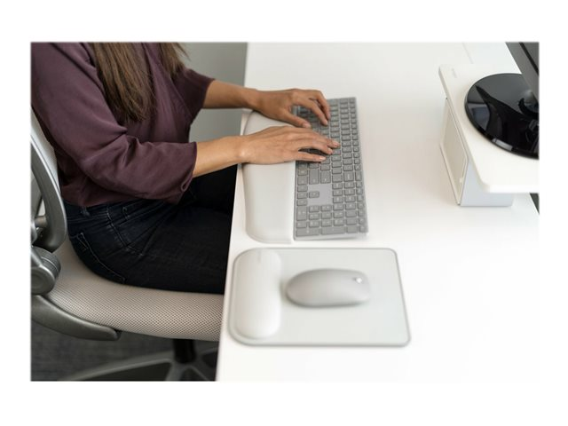 Ger stöd åt dina handleder för komfort hela dagen med Kensingtons ErgoSoft Wrist Rests. Kensingtons ErgoSoft Wrist Rests är ergonomiskt designade för att passa dagens tunnare enheter och deras utseende och främjar hälsa och förbättrar produktiviteten. ErgoSoft Wrist Rests, som har premiumklädsel av konstläder som är förstärkt av ett gelvadderat inre, är tillgängliga i många olika designer för att passa olika höjder för mekaniska-, gaming-, tunna- eller standard tangentbord och datormöss. Ett idealiskt handledsstöd för dagens arbetsplatser och moderna kontor.