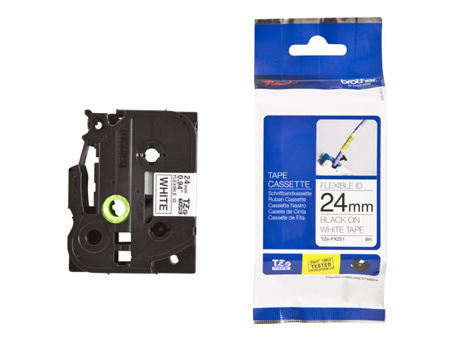 Brother TZe-FX251 - Lim - svart på vitt - Rulle ( 2,4 cm x 8 m) 1 kassett(er) hängande låda - flexibel ID-tejp - för Brother PT-D600, P750, P950; P-Touch PT-2430, 3600, 9800, D800, E500, E550, P750, P900