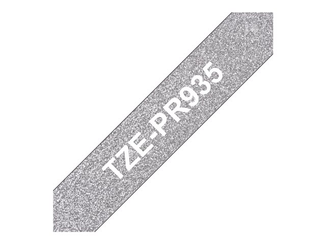 Brother TZe-PR935 - Vit utskrift på premium, glitter silver - Rulle (1,2 cm x 8 m) 1 kassett(er) bandlaminat - för P-Touch Cube Pro PT-P910BT TZEPR935