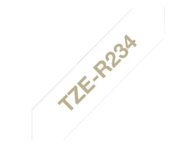 Brother TZe-R234 - Guld på vitt - Rulle (1,2 cm x 4 m) 1 kassett(er) bandtejp - för Brother PT-D210, D600, H110, P750, P950; P-Touch Cube PT-P300; P-Touch Cube Pro PT-P910 TZER234