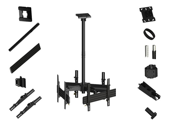 Multibrackets M Ceiling Mount Pro MBC3U - Monteringssats (takplatta, skyddslock för takplatta, 3 kopplingsplattor, 3 kopplingsstänger, 3 stödskenor, trekantig koppling, 4 förlängningsrör (80 cm), 3 skenor, 6 lutningsarmar) - för 3 LCD-bildskärmar - aluminium, stål - svart - skärmstorlek: 40"-65" - takmonterbar 7350073733521
