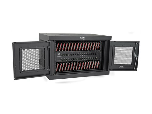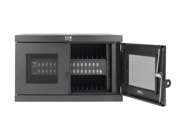 Eaton Tripp Lite Series 32-Device USB Charging Station Cabinet with Sync for Smartphones, Wall Mount and Desktop Options, 230V, Schuko CEE7 to C13 Plug, Black - Laddare för flera enheter skåp - med kretsbrytare - på bord, väggmontering - svart - för P/N: M100-10N-BK, M100-10N-BK-10, SRXFANWM, U326-001-BK