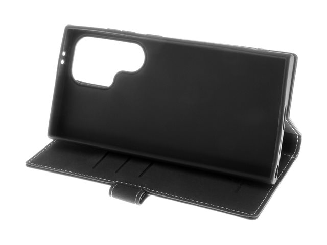 Insmat Exclusive - Vikbart fodral för mobiltelefon - läder, termoplastisk polyuretan (TPU), galvaniserad bronsring, bomullssömmar - svart - för Samsung Galaxy S26 Ultra